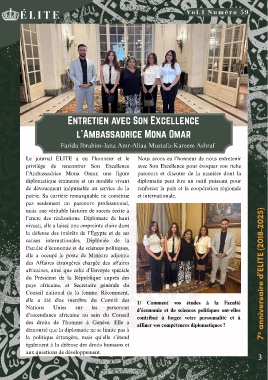 africaines, ainsi que celui d’Envoyée spéciale 7ᵉ anniversaire d’ELITE (2018-2025)